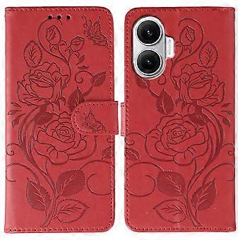 TKdaddy ل Xiaomi Redmi Turbo 4 Pro 5G / Poco F7 5G حافظة محفظة حامل مطبوع بغطاء هاتف جلد وردة فراشة PU أحمر