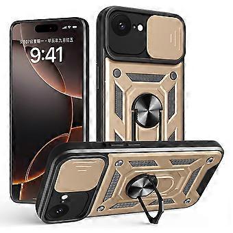TKdaddy AMORUS For iPhone 16e Case Kickstand PC + TPU Phone Cover with Camera Lens Slider Gold