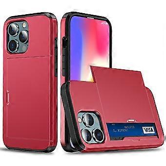 TKdaddy AMORUS For iPhone 13 Pro Case with Sliding Card Holder PC TPU Phone Back Cover Red