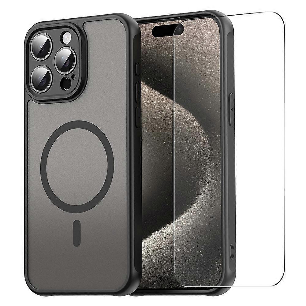 TKdaddy ENKAY HAT PRINCE For iPhone 16 Pro Max Magnetic Case with 9H Tempered Glass PC TPU Matte Phone Cover Black