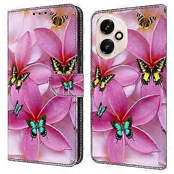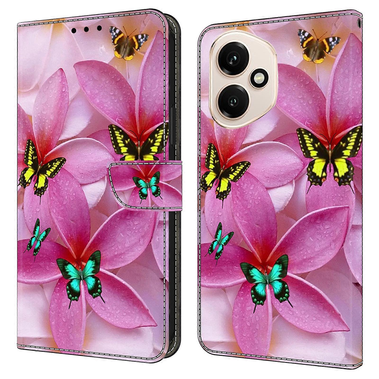 TKdaddy For Honor 400 5G (Global) Wallet Case Pattern Printing Stand Leather Flip Phone Cover Pink Floral Butterfly