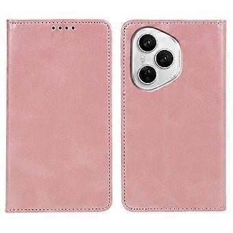 TKdaddy For Honor 400 Pro 5G (عالمي) جراب قوي مغناطيسي من جلد البولي يوريثان غطاء هاتف نسيج ربلة الساق ذهبي وردي