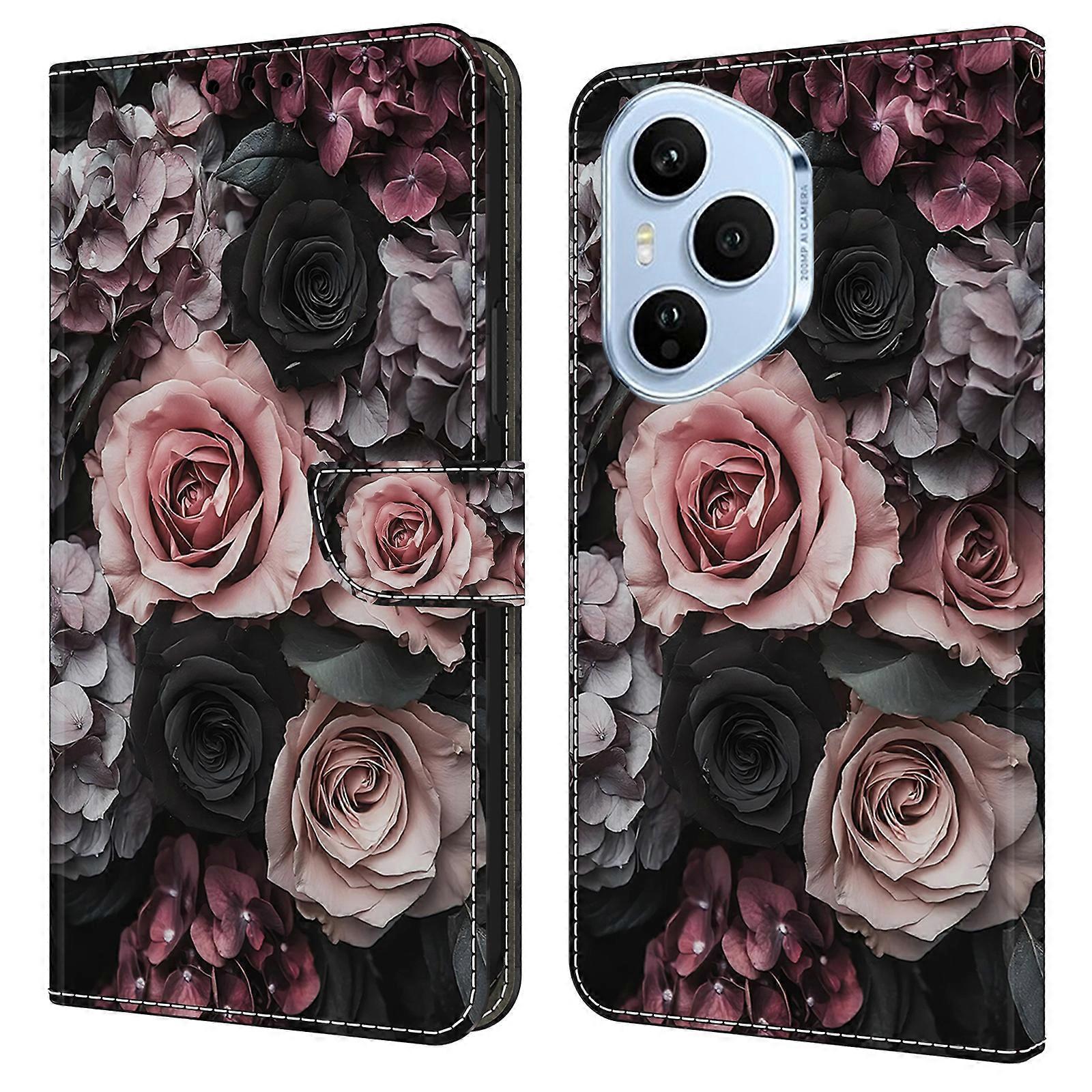 TKdaddy For Honor 400 Pro 5G (Global) Leather Case Pattern Printing Wallet Stand Flip Phone Cover Chinese Rose