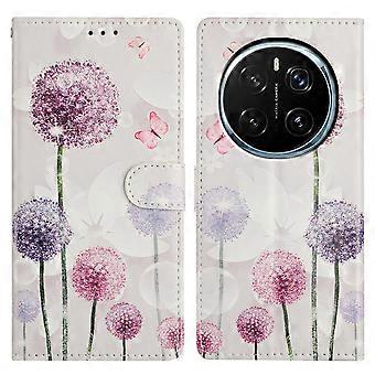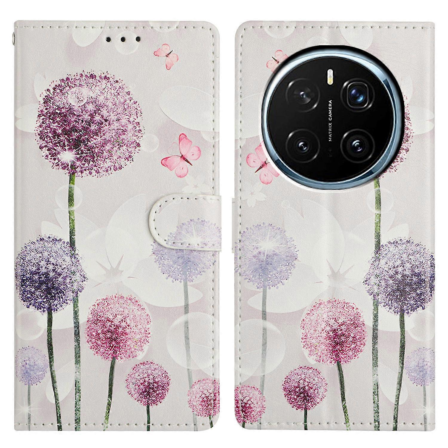 TKdaddy For Honor Magic7 Pro 5G Wallet Phone Case PU Leather Flip Cover with Stand Card Holder Painted Design Dandelion