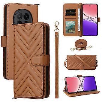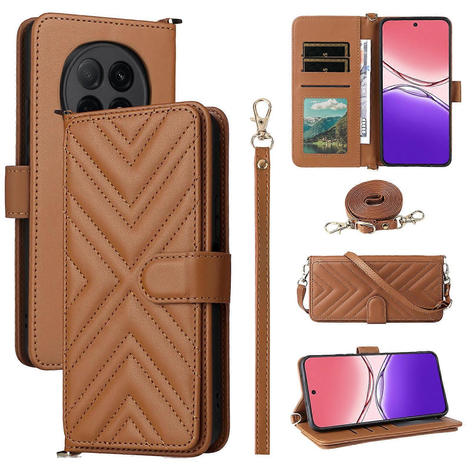 TKdaddy For Oppo F29 Pro 5G (Global) A5 Pro 5G (China) Wallet Case with Shoulder Wrist Strap Leather Phone Cover Stand Brown