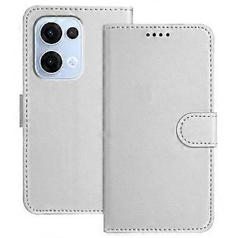 TKdaddy For Oppo Reno13 5G (عالمي) حامل محفظة جلد بلون خالص غطاء هاتف مضاد للسقوط فضي