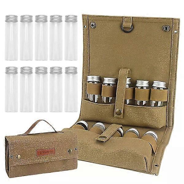 TOMSHOO Portable Spice Bag with 10 Spice Jars Canvas Spice Storage Bag Organizer Spice Bottles