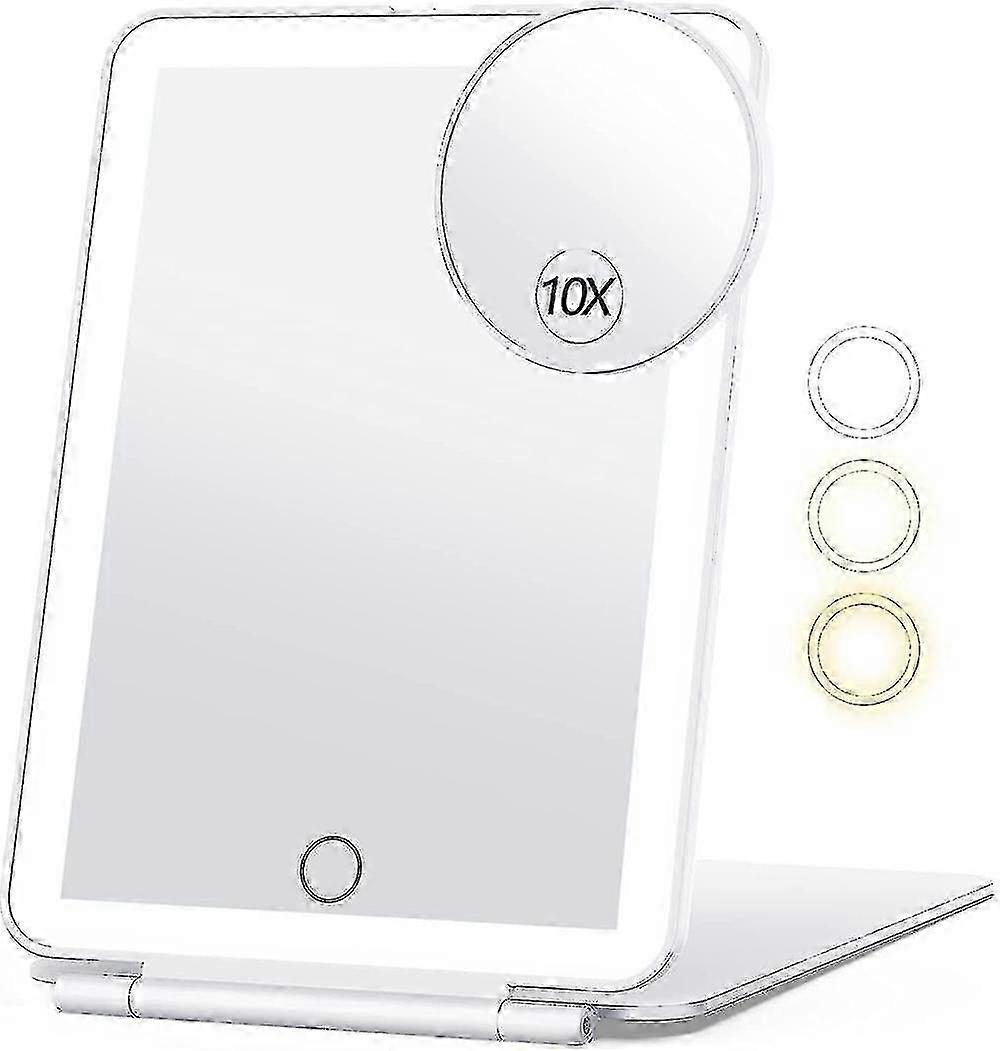Travel Makeup Mirror With 10x Magnifying Mirror, Vanity Mirror With, 3 Color Lighting, Rechargeable 2000mah Batteries,