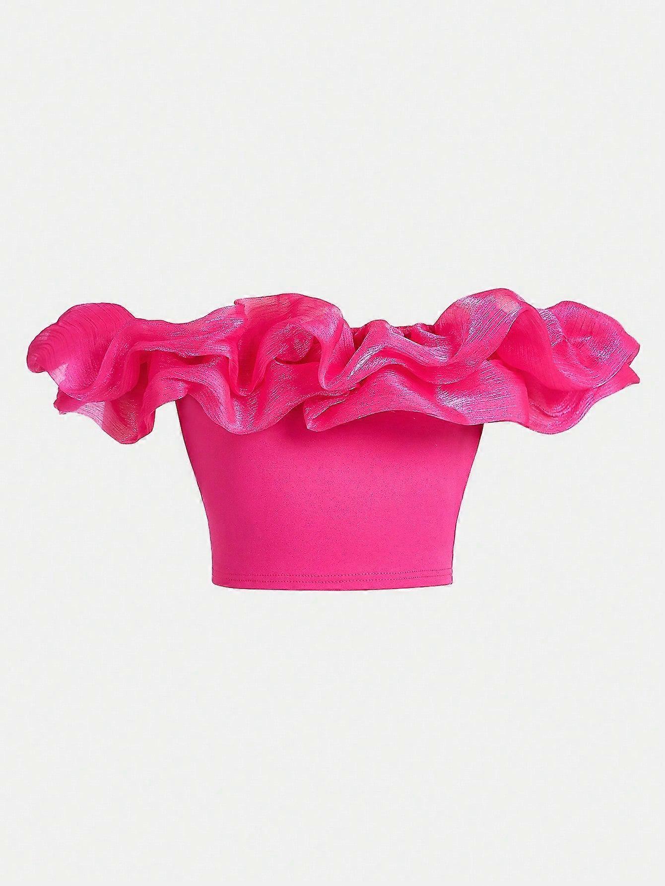 Tween Girls' Off Shoulder Slim Fit Crop T-shirt - Casual, Sleeveless, Recycled Materials