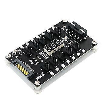 Two Interfaces Power Input to 10 Port Fan Hubs 3/4Pin Fan to SATAs 4Pin with Temperature Display for Enhanceds Cooling