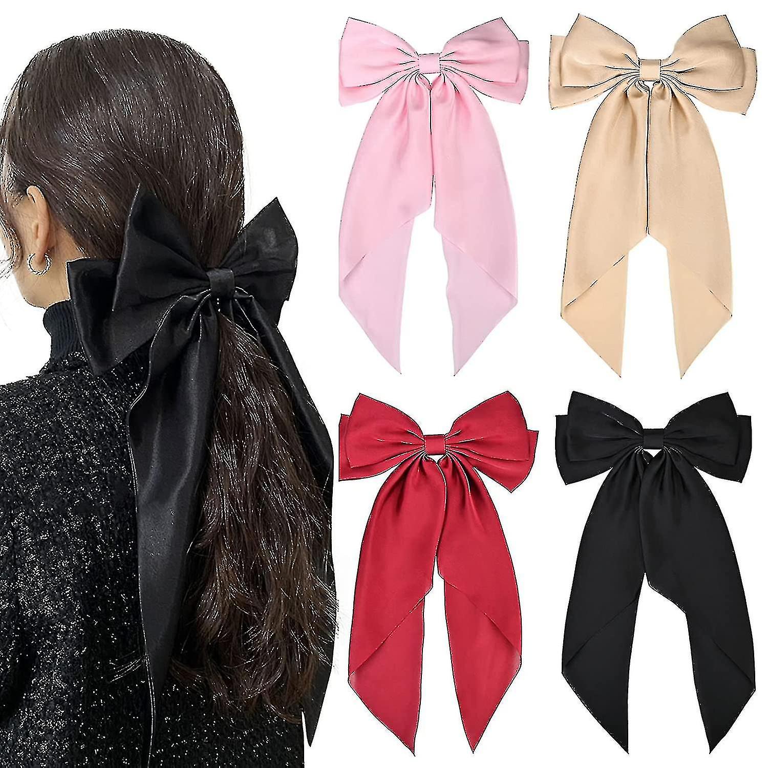 4 Pcs Silk Hair Bow Ribbon Hair Barrettes Clip For Women , Large Satin Hair Bow Hair Slides Clips , Vintage 90's Hair Accessories For Girls