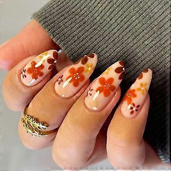 Fall Winter Floral Press On Nails Set Brown Reusable Fake Nails for Party Office Durable Finish