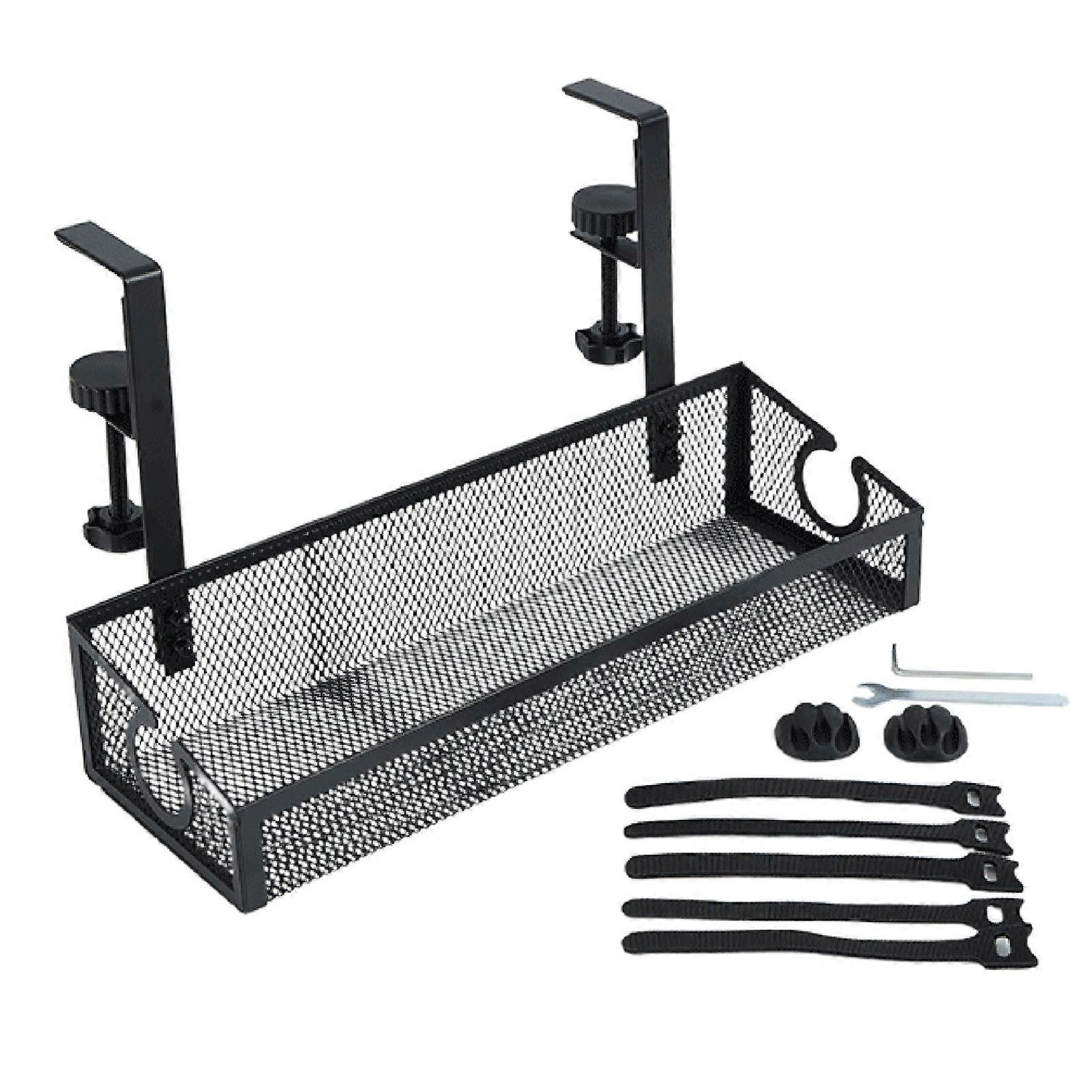 Under-Desk Wire Organizer Storage Rack 6.8kg Load-capacity Anti-Rust Corrosion-Resistant Wire Management Box Tray with Clamp Mount