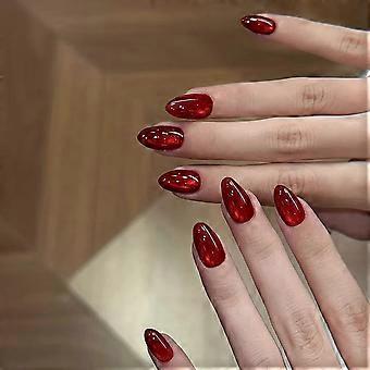Keskikokoiset manteliprässätyt kynnet, kuumat punaiset tähdet, feikkikynnet, kiiltävät ja täyspeitetyt, salonkilaatuinen manikyyri