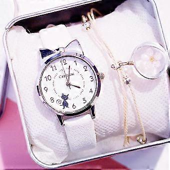 لطيف آذان هريرة قرص حزام كوارتز ووتش، أبيض جيوجيوسو
