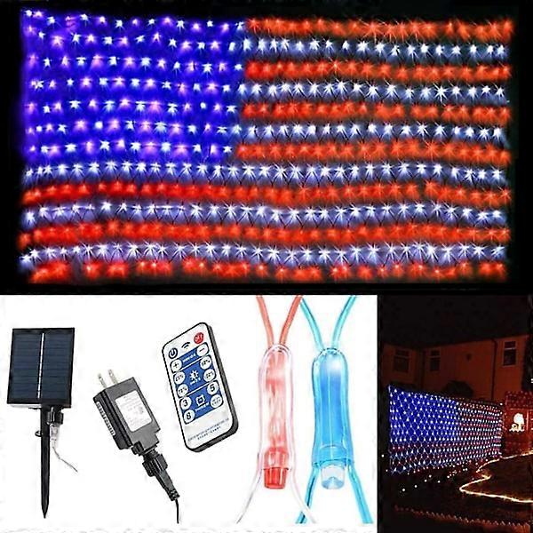(Upgraded) 2-in-1 Plug-in & Solar Powered American Flag String Light, 420 LED Flag Net Lights, Waterproof