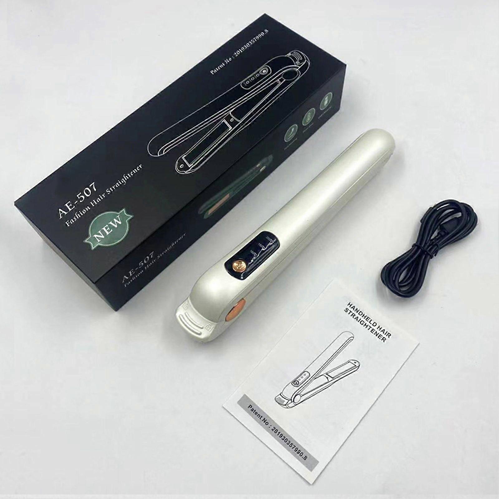 USB Charging Hair Straightener Temperature Adjustable Hair Curler Straightening Iron Styling Tool White