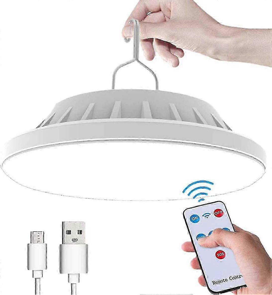 Usb Rechargeable Led Solar Camping Light With Remote Control, 5 Modes Tent Light Ipx7 Waterproof Camping Lamp With Power Bank For Hiking, Hurricane, E
