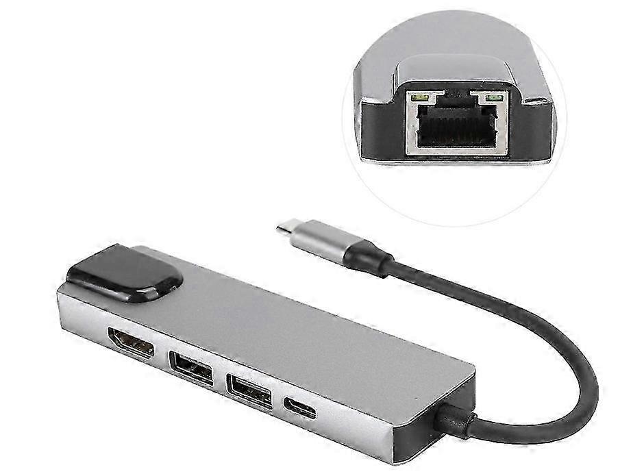 USB Computer Docking Station, 5 in 1 USBC Hub to Hdmi Adapter 4K HDMI usb c to 1000Mbps RG45 Gigabit Ethernet Expansion Port(Gray) SZRH A-W