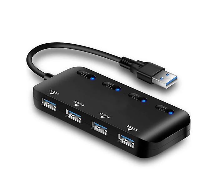 Features: 1 upstream and 4 downstream USB ports. 4-port USB 3.0 hub with super speed transfer rate up to 5Gbps. Supports hot swap. Built-in over-current protection to protect both connected devices and the hub itself from unforeseen power surges. Plug and Play no driver needed. Light weight small size easy to carry. Descriptions: USB 3.0 also provides more power to devices that require higher amounts of power to operate. It can provide 50% more power than USB 2.0 does through the cable itself. Powerfully 2A laptop-style power adapter with cable. Hub is not a standalone charger. Its appearance covered with sleek black and every port has a single LED. All 4 ports on one side to minimize cable clutter. Compatible for Windows and for Linux systems Specifications: Color: As the picture show Material: ABS USB Ports: 4 USB type: USB 3.0 Size: 10.5 x 4.4 x 1.5cm Line length:150mm Include 1 x Hub Splitter with Cable