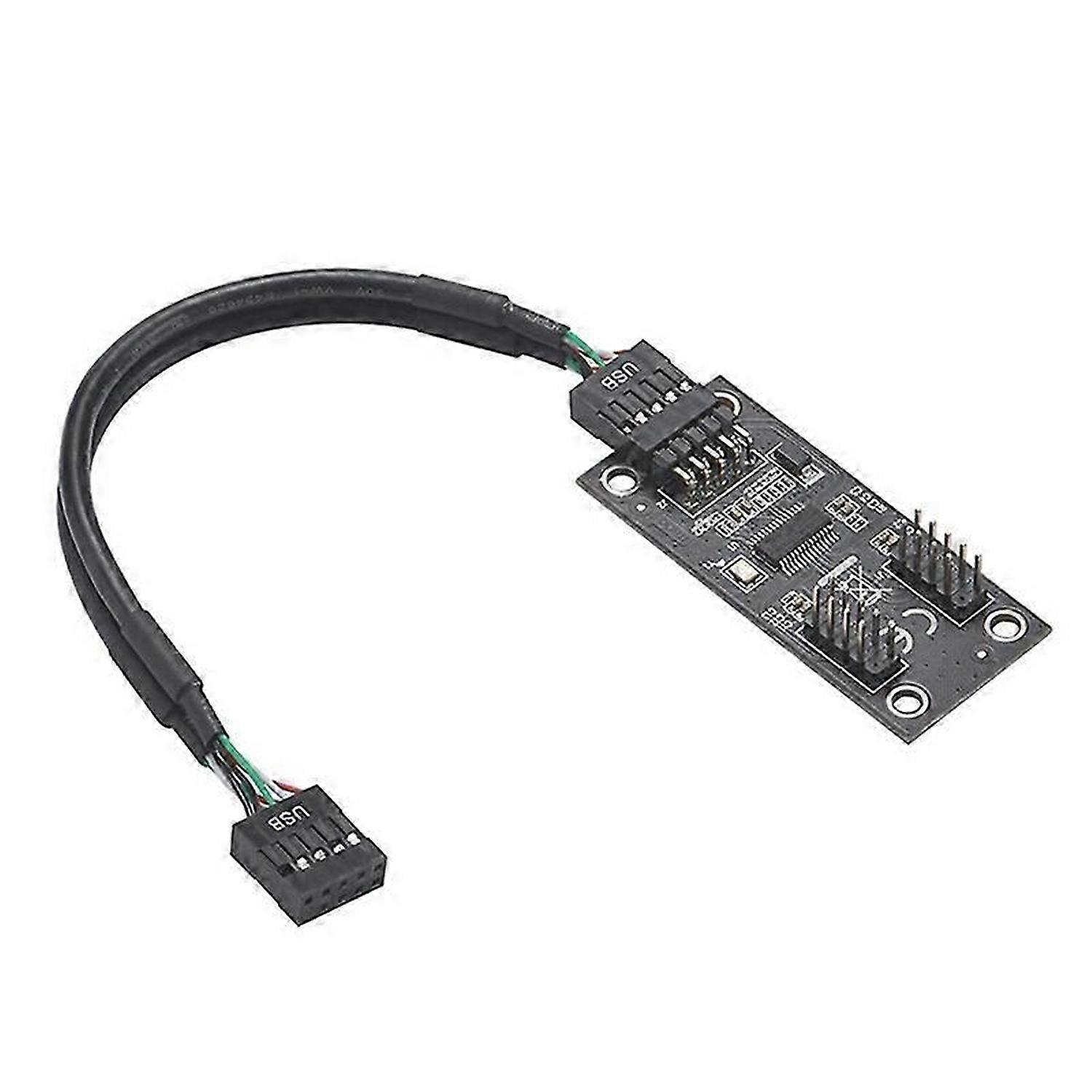Made of high-quality wiring, it's . One side connects to motherboard 9pin port, the other side splits to 2x 9pin. Campact design, portable size, easy and convenient to carry and use. Product name: USB 2.0 HUB Type: USB 9 Pin Header Interface: 9-pin interface Support System: /Linux/for OS. Colour:black Material:plastic+metal Size:Line length: 30cm Package Contents: 1 x Motherboard USB 9pin Header Connector Only the above package content, other products are not included. Note: Light reflection and different displays may cause the color of the item in the picture a little different from the real thing. The measurement allowed error is +/- 1-3cm.