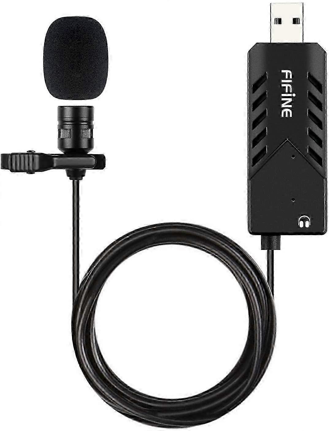 USB Lavalier Lapel Microphone with Sound Card - Clip-On Cardioid Condenser Mic for Computer & Plug and Play Convenience