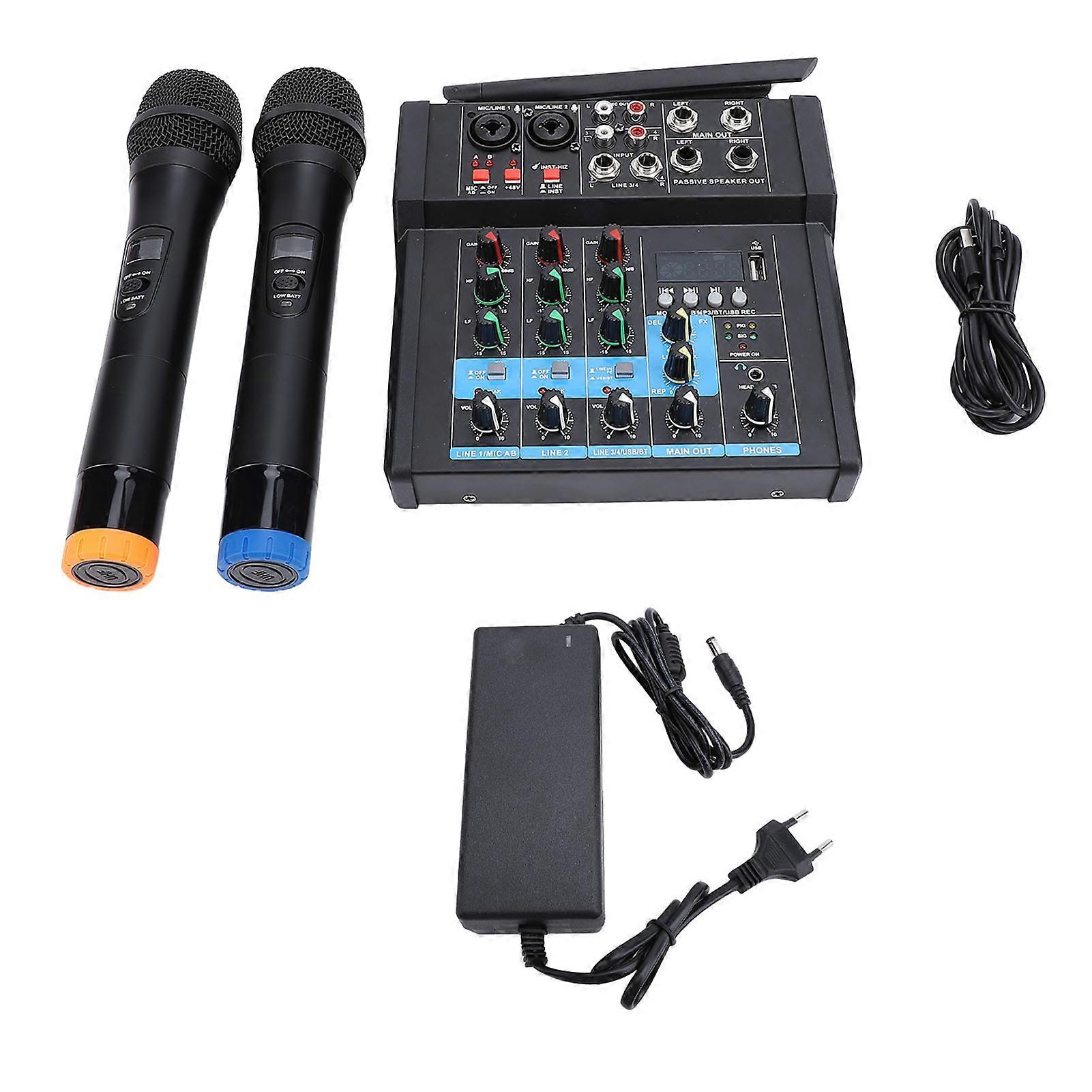 USB Mixing Console Sound Board Mixer with Dual Wireless Microphones for Karaoke Party Live Recording, USB Desk Table Mixer 100-240V EU Plug