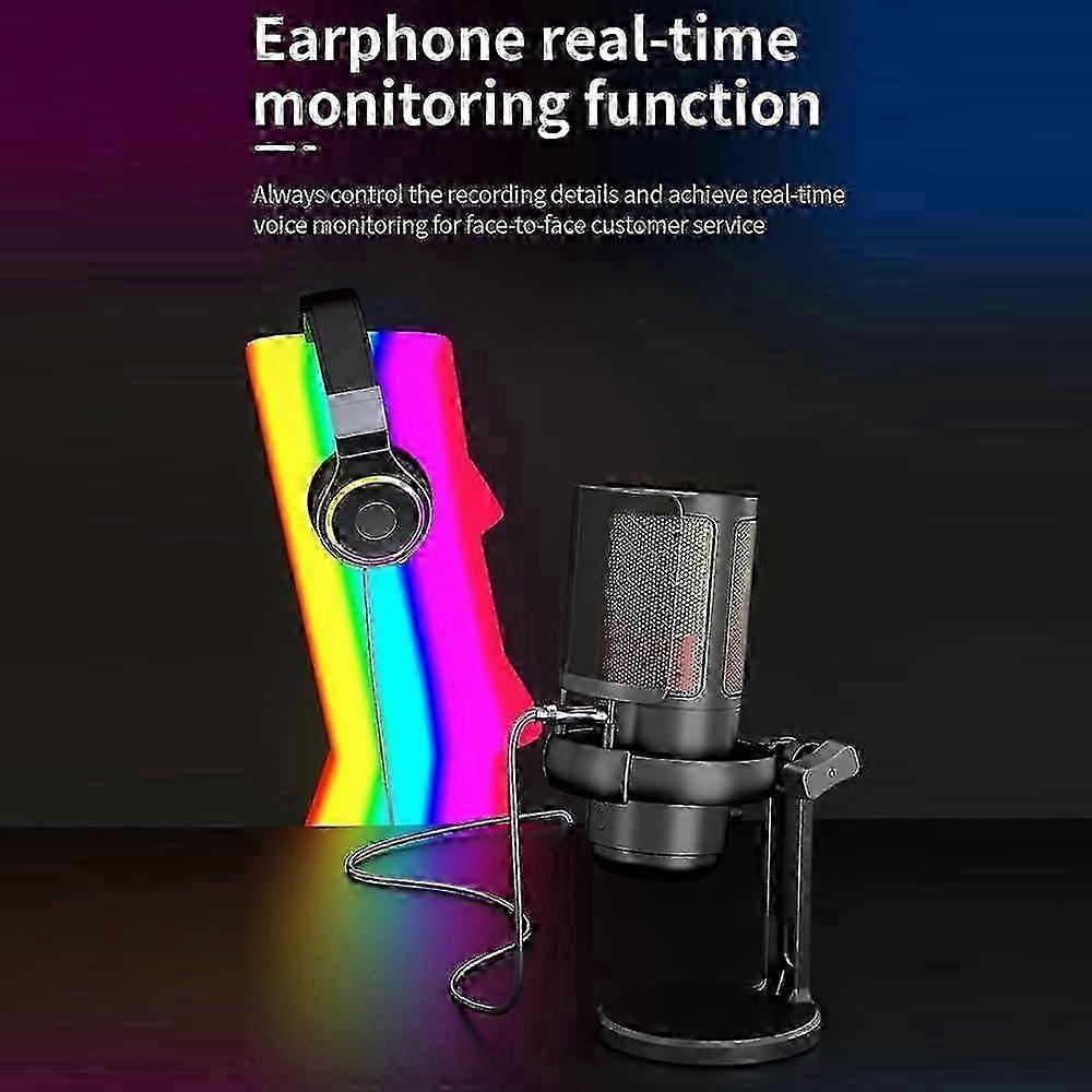 USB RGB Microphone Computer Mic Kit with Tod Real-time Monitoring Plug & Play One Key to Mute and Gain Knob for Gaming/Meeting