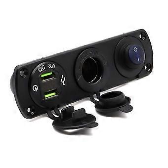 Waterproof 12V USB Charger Panel with Dual QC3.0 Fast Charging, Voltmeter and Switch for Boat RV Car Marine