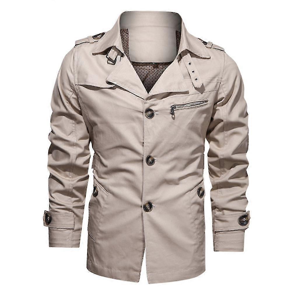 VAWAN Mens Solid Color Lapel Single-breasted Mid-length Jacket