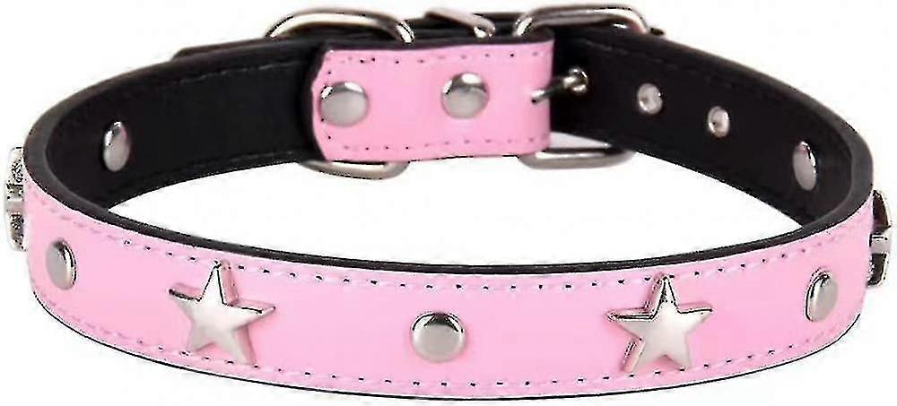 Veeki Dog Collar With Stars Studs, Puppy Small Medium Dog Necklace For Kitten Pet Collar Adjustable Length Leather(s)