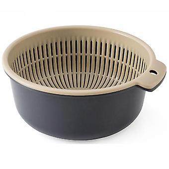 Vegetable Washing Basket Double Layer Drain Quickly Suspend Multifunction Basket Strainer with Side Handle for KitchenL Blue