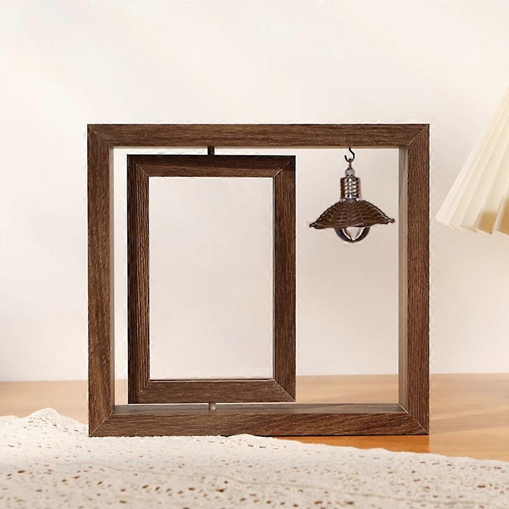 Vertical 7 Inch Photo Frame Double Sided Rotating Wooden Picture Stand with LED Light