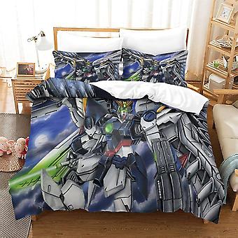 HOUKIG 3-osainen Gundam Comforter Set 3D-animaatiopainettu vuodevaatteiden peittosetti vetoketjulla tytöille, erittäin pehmeät mikrokuituvuodevaatteet