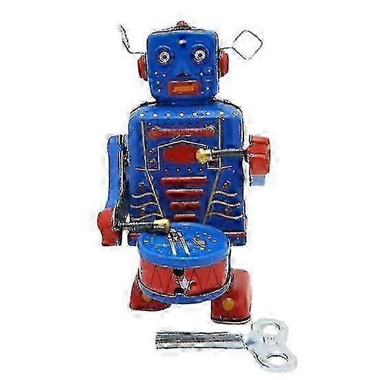 Vintage Wind-up Drumming Robot Toy: Nostalgic Spring Clockwork Robot Collectible Figurine