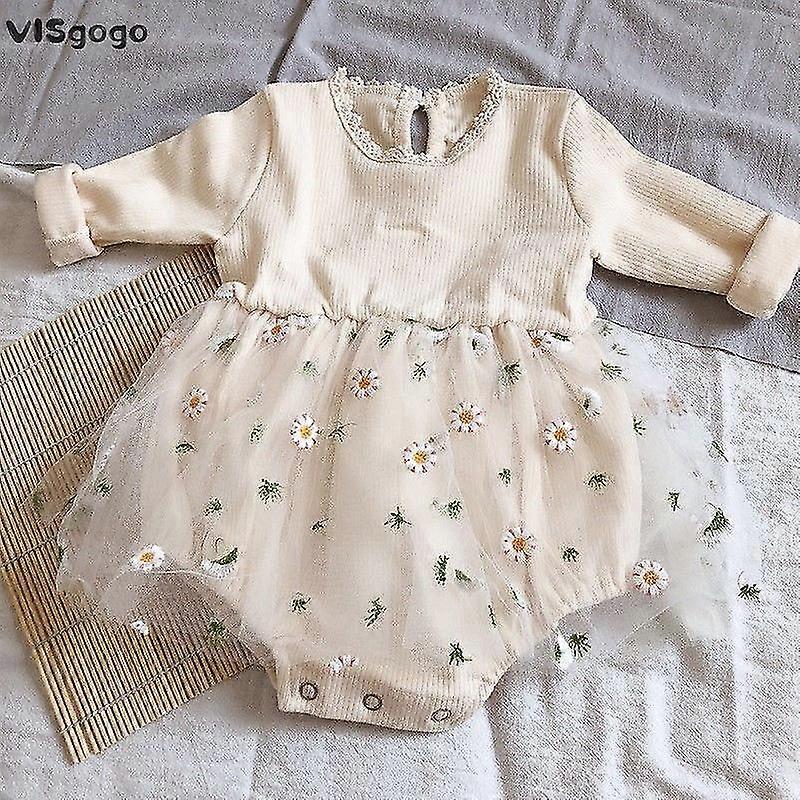 Visgogo Autumn Winter Princess Toddler Baby Girls Knit Romper Cute Long Sleeve Crewneck Bodysuits Floral Tutu Dress