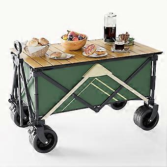 Green Beach Wagon with Big Wheels for Sand, Foldable Utility Cart with Table for Camping