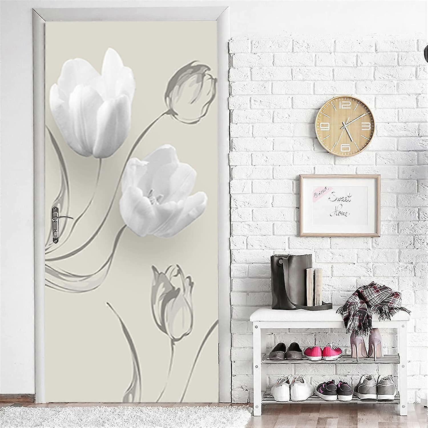 Wabjtam 3d Stickers Waterproof Door Stickers White Flowers Self Adhesive Wallpaper Removable Wall Decals For Home Office Decoration 37.4" X 84.6"