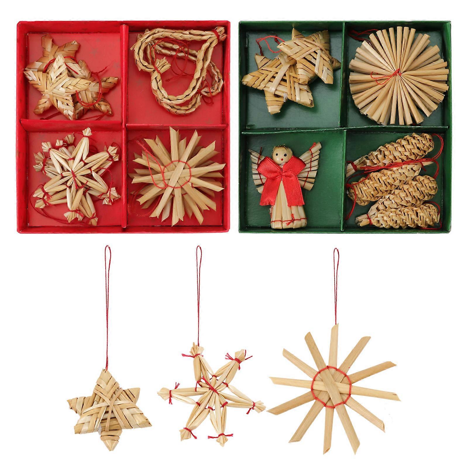 Wheat Straw Material Christmas Pendant Square Shape Random Style 13x13cm Party Decor 2 Cases 23Pcs
