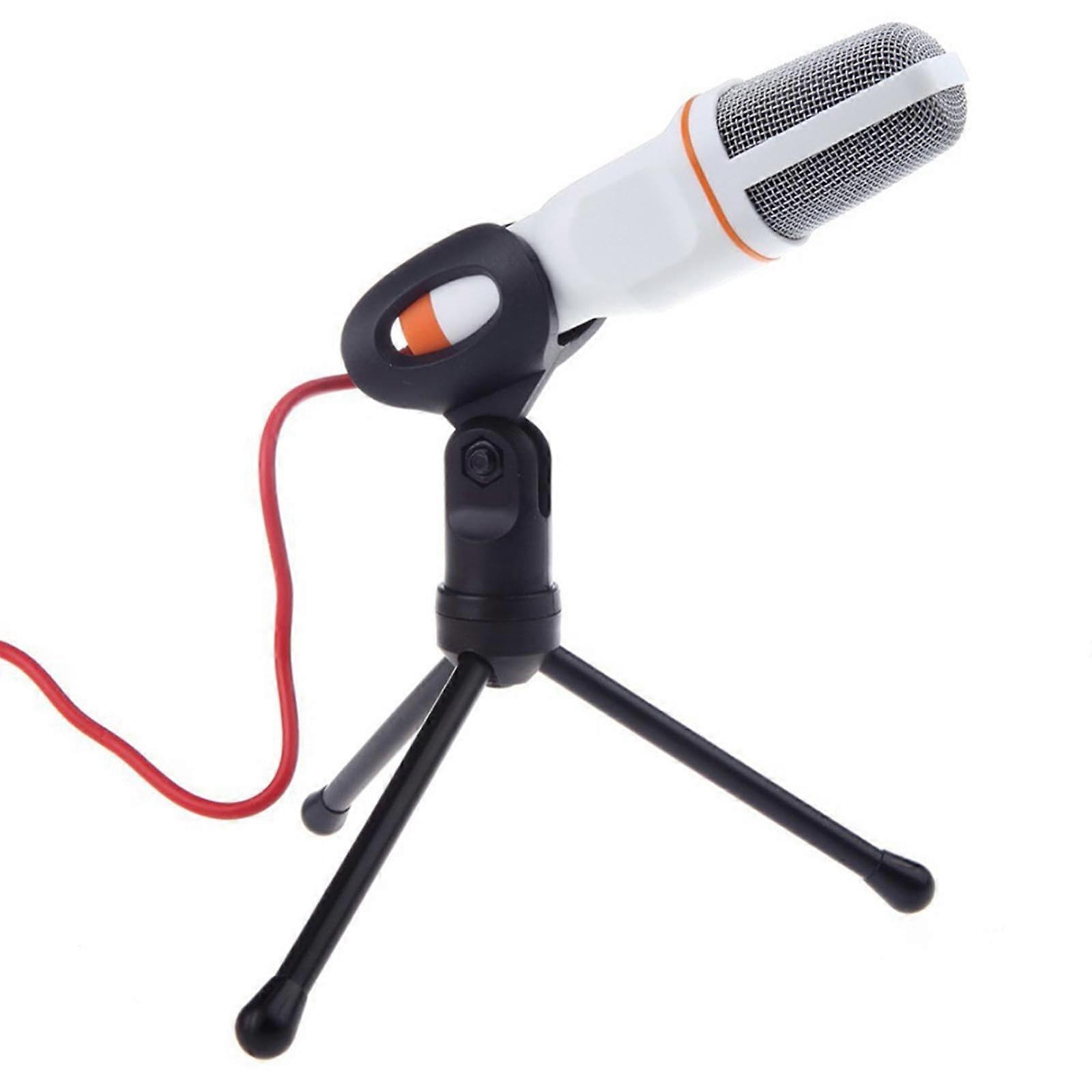White Desktop Microphone with Stand, Condenser for Studio and Home Use, Noise Cancellation, USB Compatible