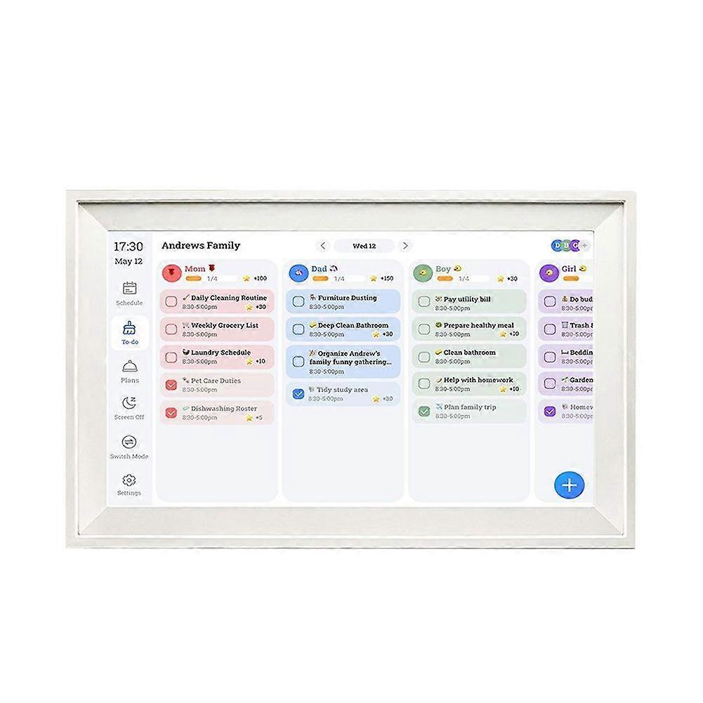 15.6 Inch Smart Calendar Auto-Syncs With Seamless Event Syncing Bring order to family life: sync schedules, plan meals track chores & share lists - all beautifully organizedon one central screen WiFi digital photo frame Upload and share photos wire-lessly through the app to save beautiful memories Difgital decorative painting Decorate the room to enhance the artistic atmosphere Difgital Family Calendar Specify monthly schedule and plan, fun interactive rewards Hign-concerned Chemical:None Size: equal 15.6Inch Function:Touch Screen (The product printed words depending on the batch, but this does not affect use) Plug Type:US Plug, it applies to Canada, India, Mexico, Thailand, Taiwan, the , the Philippines and so on. Voltage:AC110V Color:As Shown Material:ABS Package Contents: 1 * Digital Calendar Chore Chart 1 * adapter Only the above package content, other products are not included. Note: Light reflection and different displays may cause the color of the item in the picture a little different from the real thing. The measurement allowed error is +/- 1-3cm.
