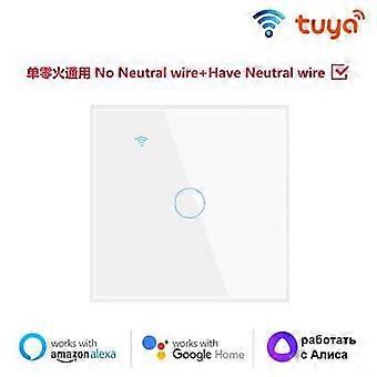 Product Description NOTE:  Fast shipping ,if your address in US/CA/EU, it only take 12-18 days to reach your hand.  Other country may take 25-35 days depend on your address, thanks for your understanding~ Description: 【TWO wiring methods】Support  Neutral system and No Neutral system.Support single fire system,but you need a capacitor when you use No Neutral system. 【3 control methods】APP control+Voice control+Switch touch control 【Wi-Fi direct connection】No gateway hub is required, just install it and use it.Directly connect to the Internet, you can control with your mobile phone to realize smart life.  (Need 2.4GHZ) 【APP remote control】 Tuya or smart life APP can be used to remotely control the switch on and off. You can see the open or closed state of the switches from the APP when you are away. 【Link with other smart devices】It can be connected to other smart devices to realize a convenient smart life together. A home mode can be created and linked with other smart devices to automatically open the light as soon as you go home. 【Support voice speaker control】The switch is compatible with  Alexa and Google Home Assistant, allowing you to use the voice control smart switch to turn on/off. 【Timing】The smart switch is automatically turned on and off at a given time through the timer function. Choose the time you want to wake up, automatically open the light, so you can easily enter the day; choose the time you want to close the light. 【Share】The control switch can be shared with family members. 【SENSITIVE TOUCH CONTROL】Tempered glass touch screen of this smart switch is sensitive to the touch of control, premium durable glass material provides up to 20 million touch figures through our rigorous testing. It is water-proof,Damp-Proof, Resists Scratches. 【EASY SETTING UP】Scan the User Manual QR code Download the  Smart life/TUYA APP, or download from the App Store or Google Play Store and connect your mobile device to your  2.4 GHz Wi-Fi network to find your light switch, then you can turn the lights or control other electrical devices with ease. Spezifikationen: 1. Zertifizierter Satndard:2.4G WiFi IEEE 802.11b/g/n 2.Nennspannung:  100-250V AC, 50-60Hz 3.Max Last:1200W 5. Gehärtetes Glas 6. Unterstützung Neutrales System und Kein Neutrales System. 7.Max Strom:10A 8.App: Smart Life, TUYA Samrt 9. Touch tempered WIFI Schalter Package Included: 1*switch, 1* manual,1* mounting screw package,1*capatitor