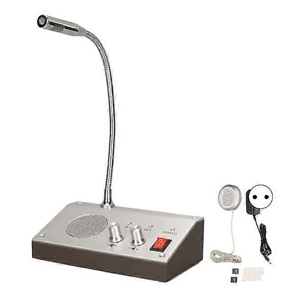 Window Speaker System Silver Dual Way Automatic Control Pure Sound Intercom System for Bank 100‑240V EU Plug