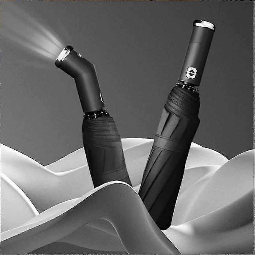 Windproof Automatic Folding LED Umbrella with Flashlight Sun Rain Protection