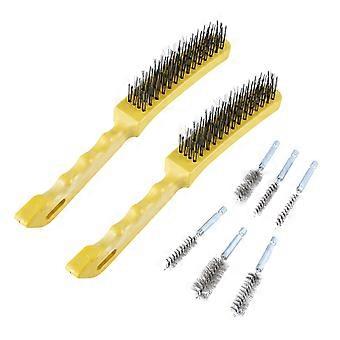 Wire Brush,Steel Wire Scratch Brush for Removing Rust with 11" Long Curved ABS Handle,Large