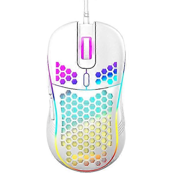 Wired gaming mouse, ergonomic and lightweight USB computer mouse (white)