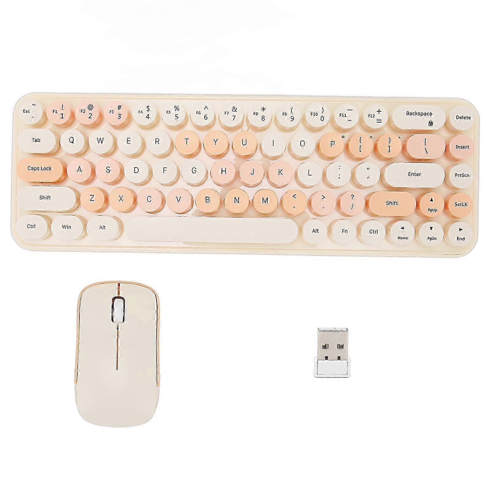 Wireless Keyboard Mouse Combo Retro 68 Round Keycaps 2.4GHz Wireless 2025