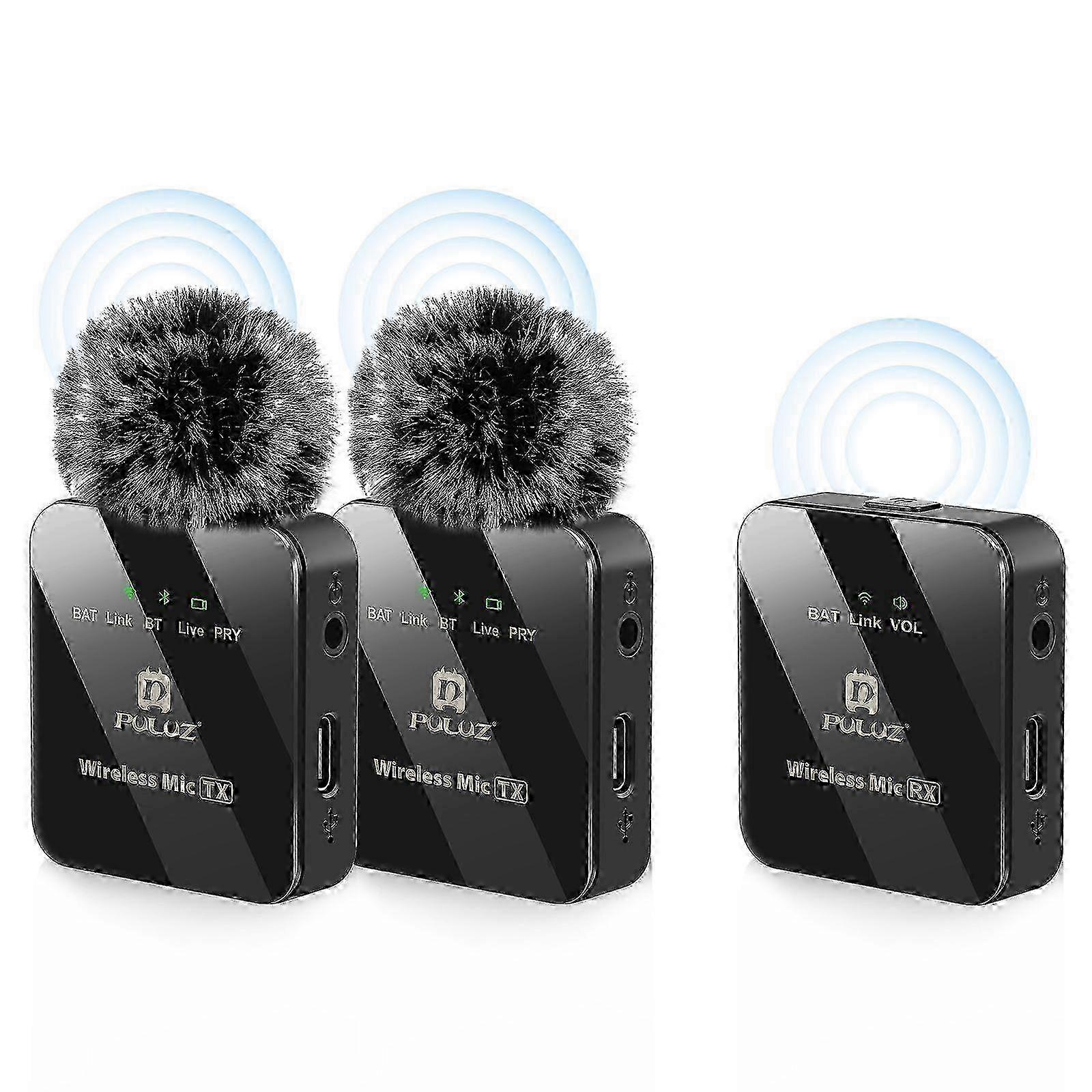 Wireless Lavalier Microphone with 2 TX and 1 RX by PULUZ (Black)