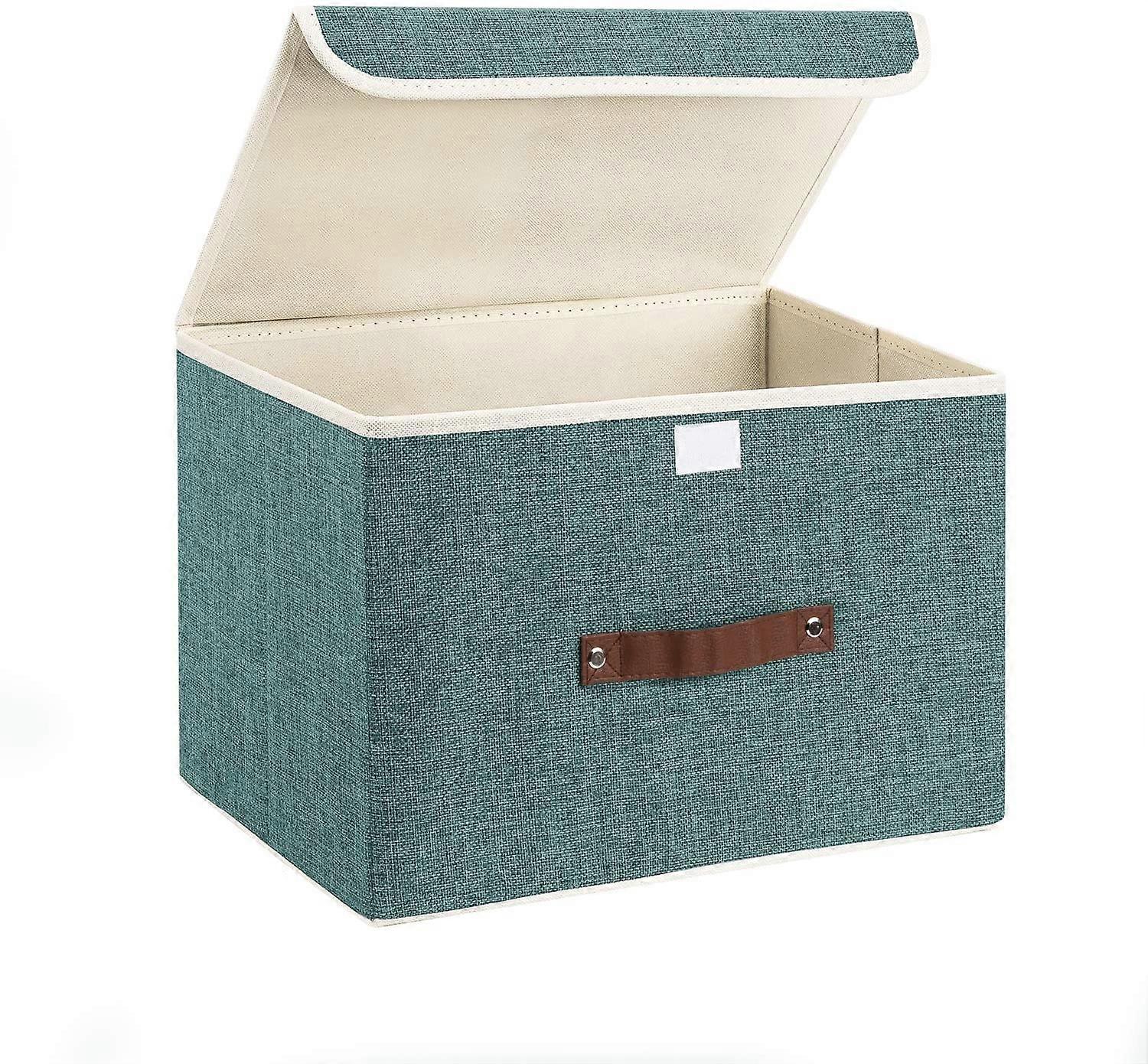 With Lid Foldable Storage Box with Linen Stitching Fabric Storage Basket, Storage Box with Cotton Rope Handles Storage Cube Storage BoxCream White