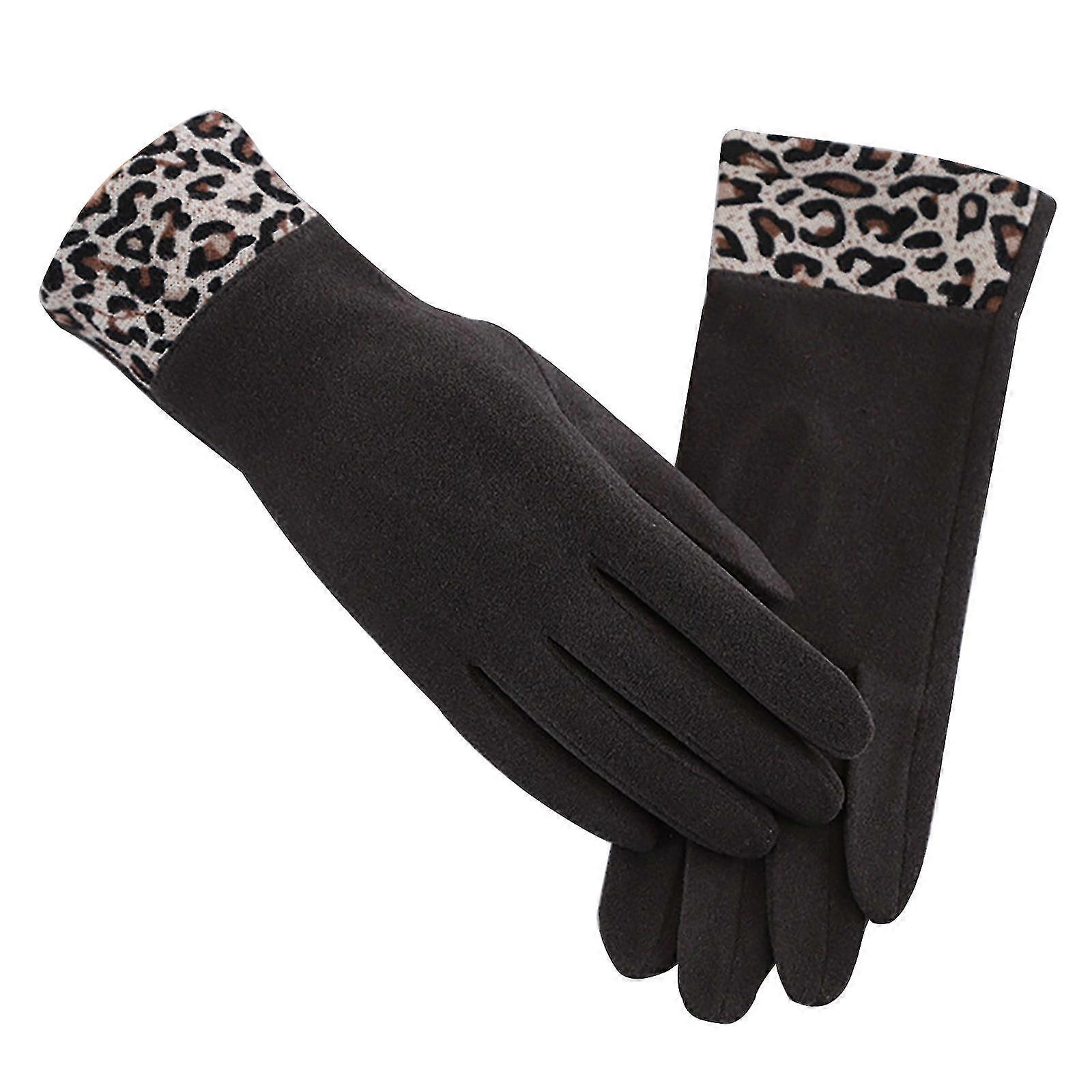 women's leopard print gloves with fleece t-ouch screen for index finger